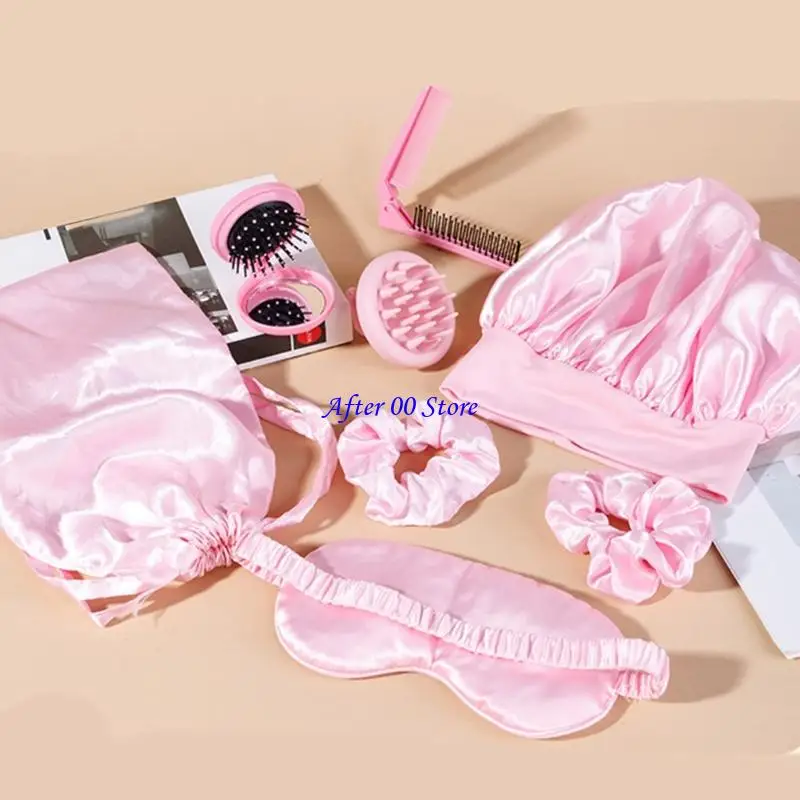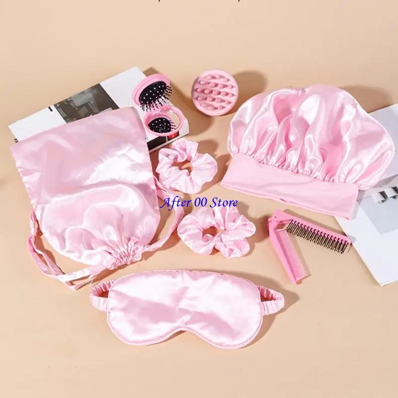 Enhancing your night time hair care routine with this luxurious 8 pieces silk sleep caps set, featuring breathable shower caps and skin friendly eye mask for salon quality results.