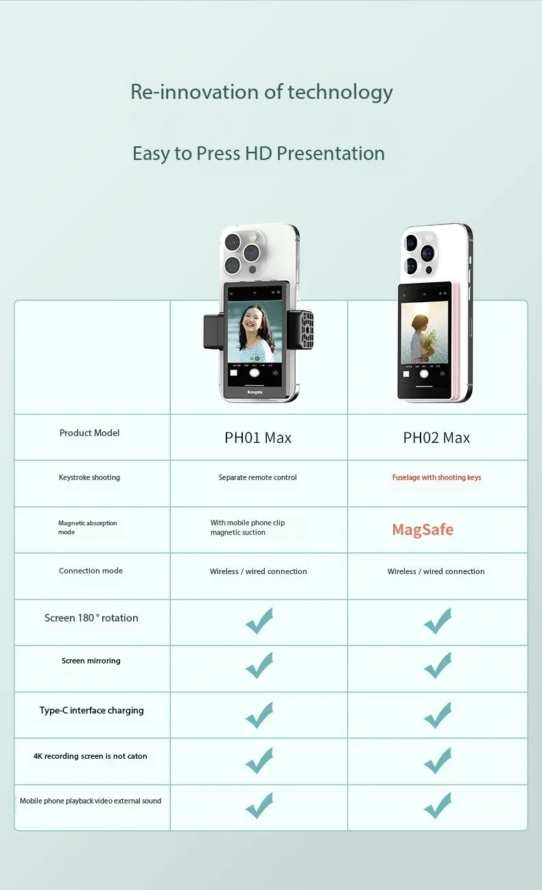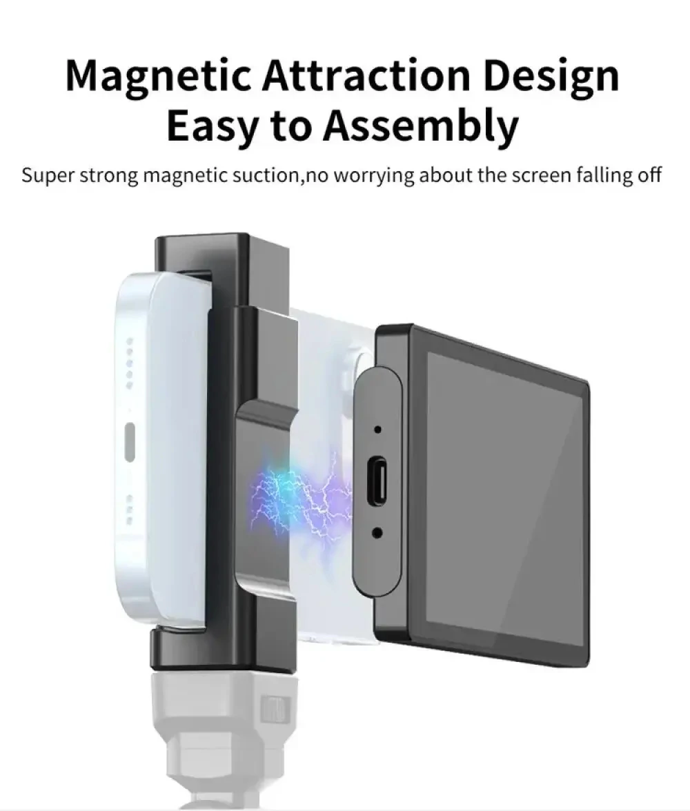 ·ăUnique Design and Real-time Screen Sharing ăNewmowa Magnetic Phone Vlog Screen is the ultimate solution for capturing stunning selfies! With unique attachment system, this screen can easily attaches to your phone, providing a crystal-clear view of your phone. You can see the screen of your phone in real-time through our vlog screen. With our product, you can use your phone's rear camera for flawless selfie, vlog, live stream anytime, anywhere. Say goodbye to awkward angles and blurry shots.