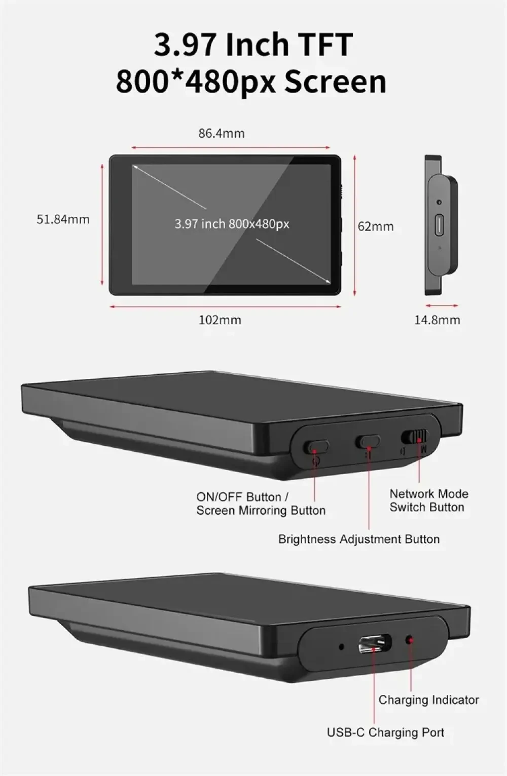 How to use: The display comes with a hotspot, turn on the WIFI function of the phone to connect to the hotspot of the display, and then turn on the wireless screen casting function of the phone can be used.