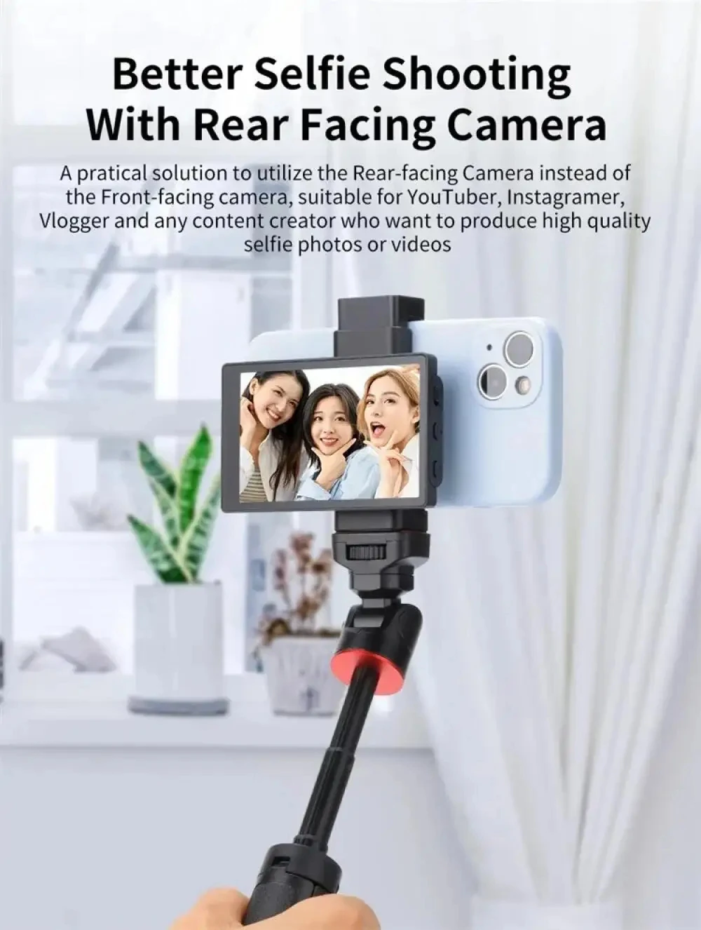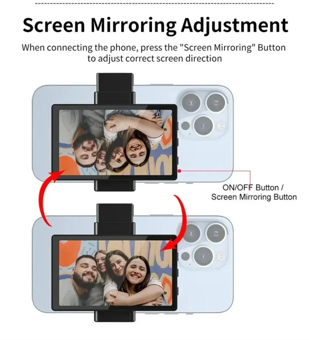 Transform your smartphone into a professional vlogging setup! This phone monitor screen lets you use your phone's superior rear camera for selfies, vlogs, and live streams while seeing yourself in real-time.